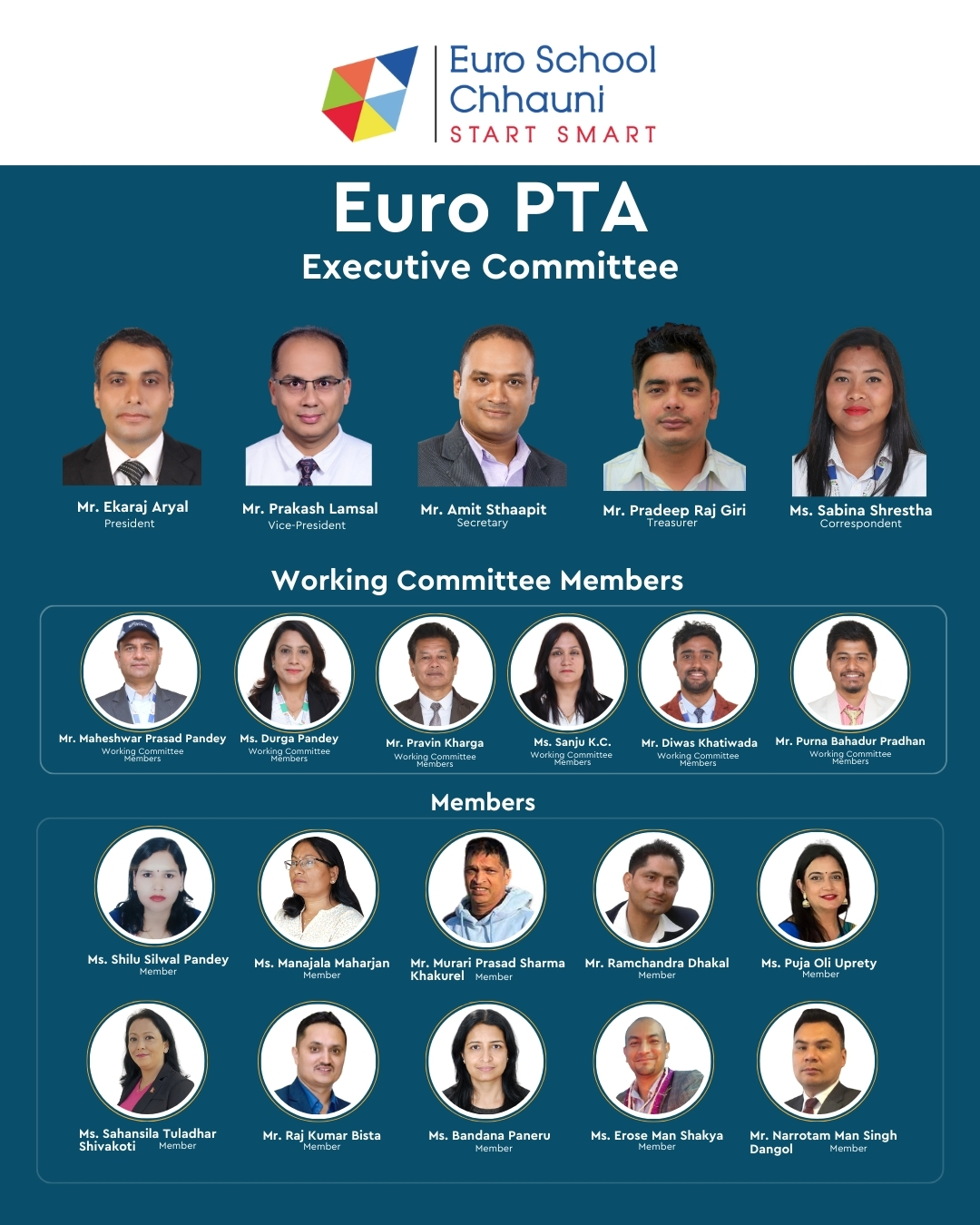 We are deeply grateful to every parent who has trusted us with their child’s future. At Euro School Chhauni, education is a shared responsibility, and we believe that meaningful learning happens when parents and educators work together. Our Parents’ Association provides a platform where parents and guardians collaborate with the school to support and enhance each child’s educational journey. It serves as an important channel for dialogue, feedback, and partnership among parents, staff, and the administration, ensuring open communication and a well-informed school community.